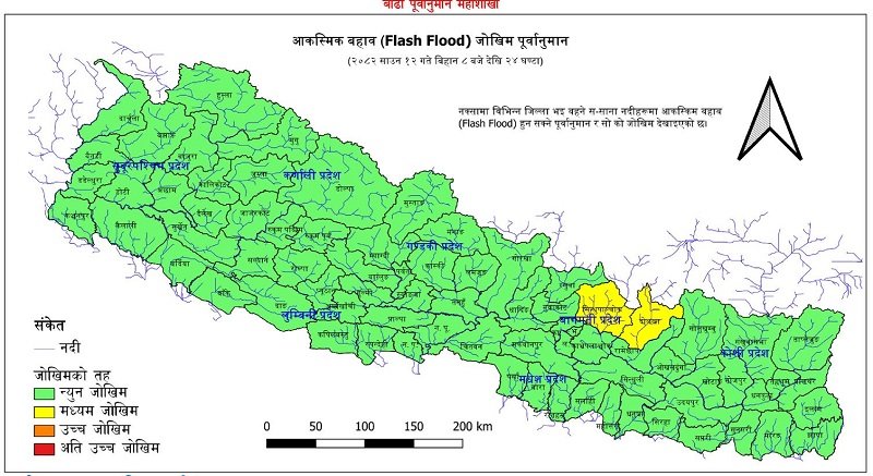२५ जिल्लामा बाढीको मध्यम जोखिम