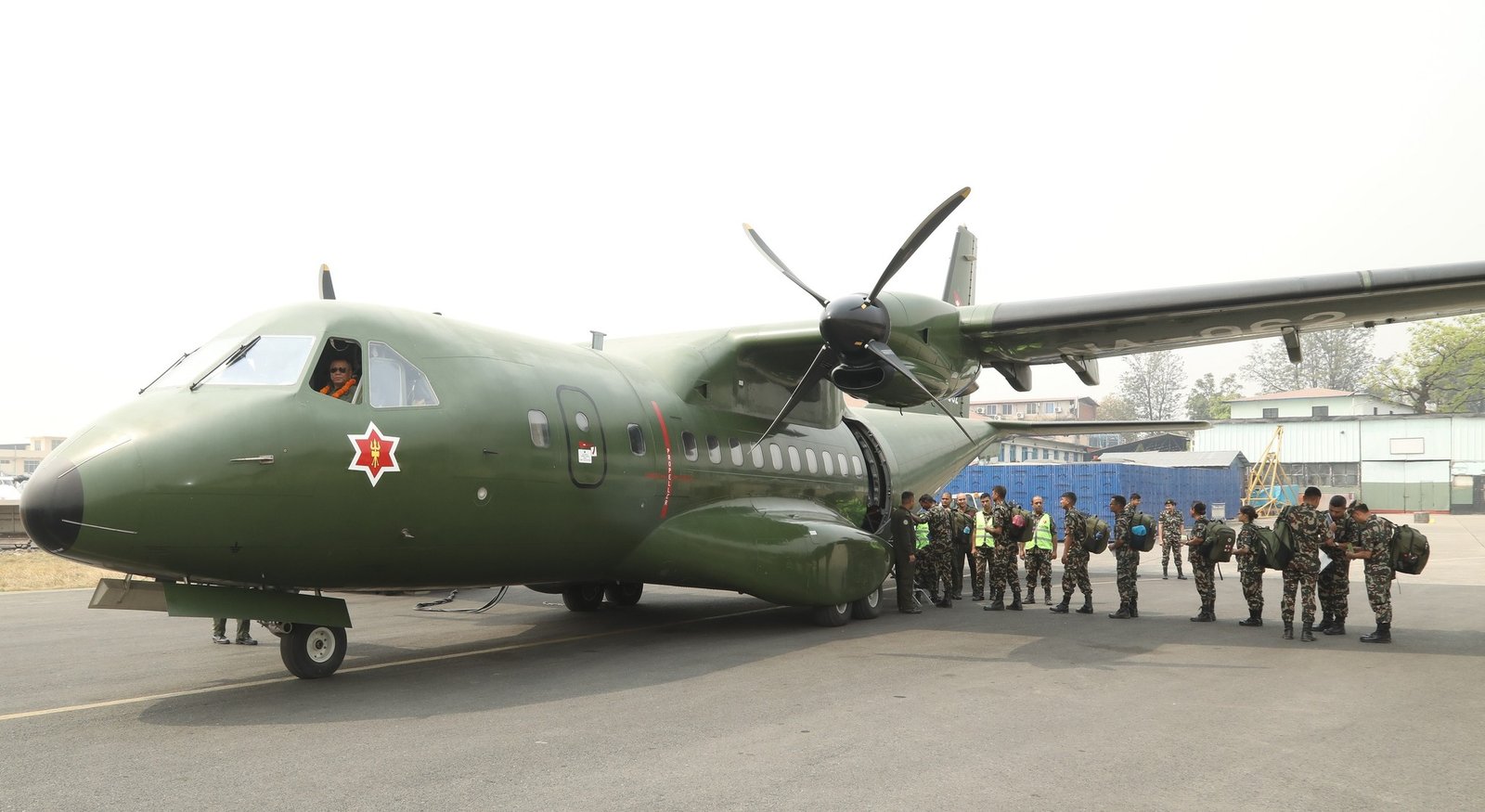 भूकम्पपीडितलाई राहत बोकेर उड्यो नेपाली सेनाको टोली
