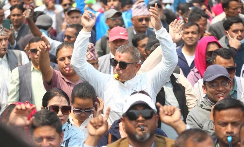 माइतीघर-बानेश्वर सडकमा शिक्षकहरूको सिठी जुलुस